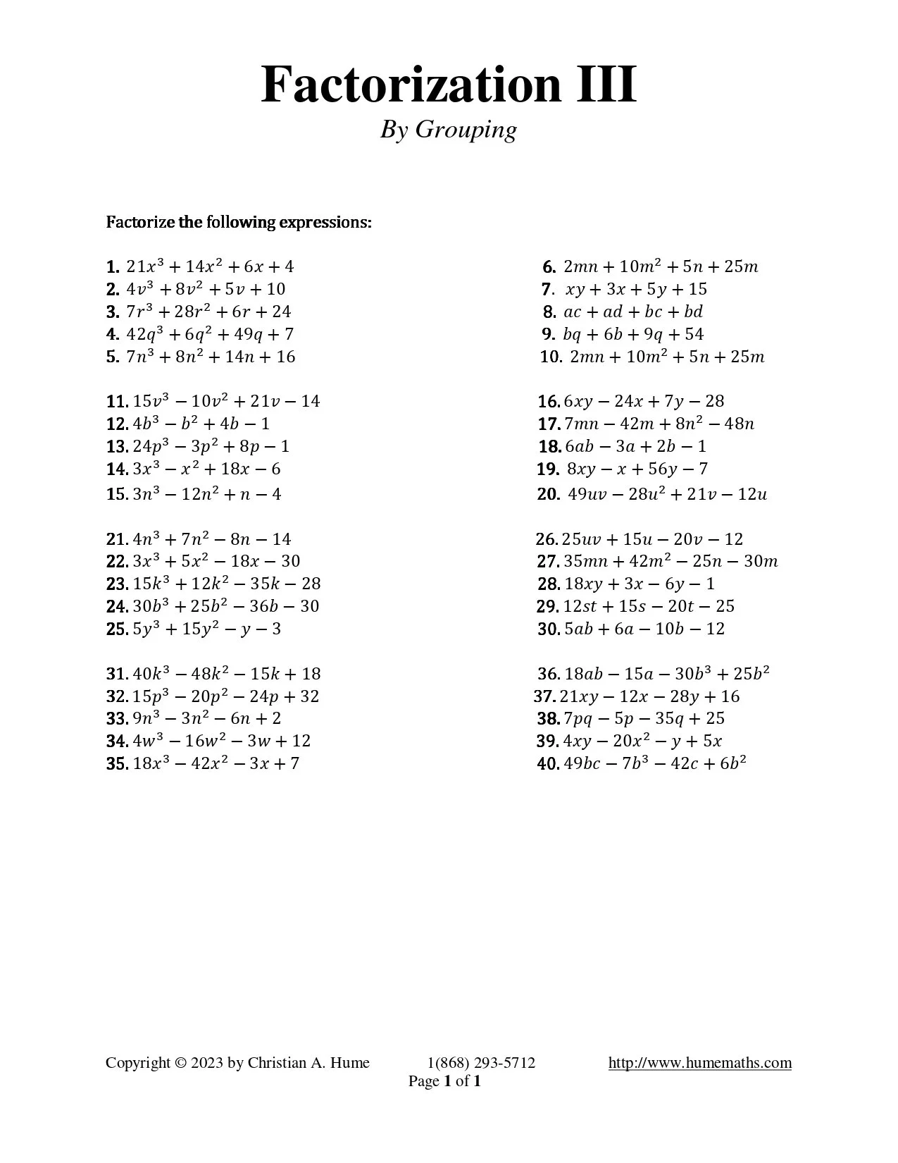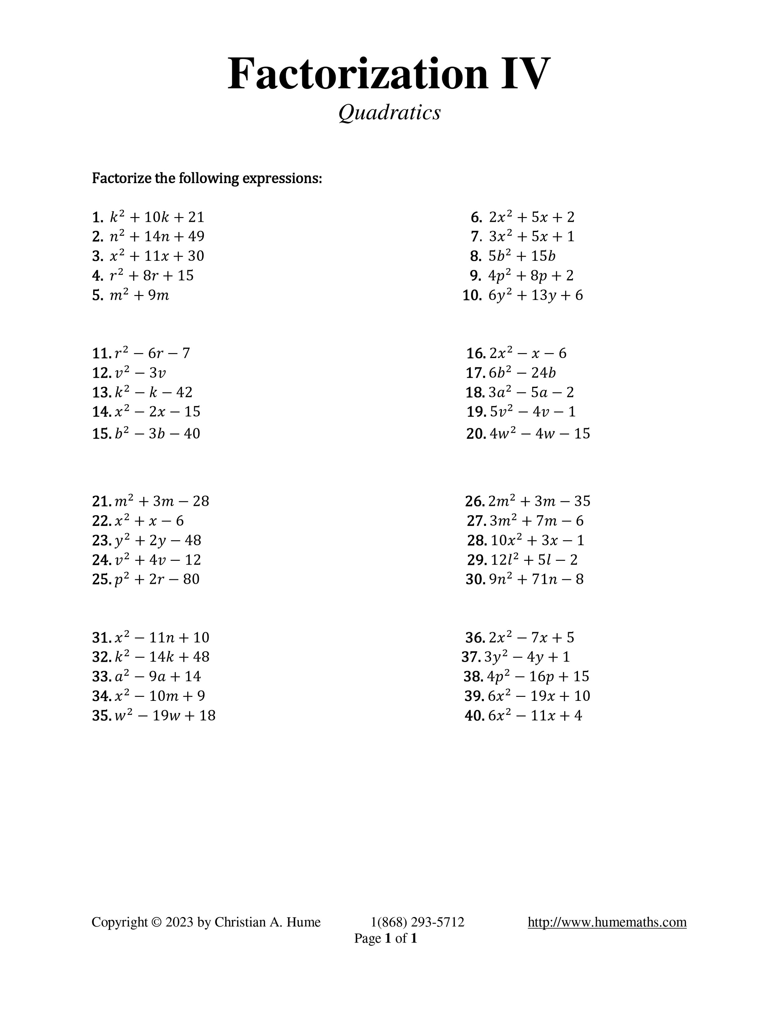Factorization III (By Groups) Factorization IV (Quadratics)
