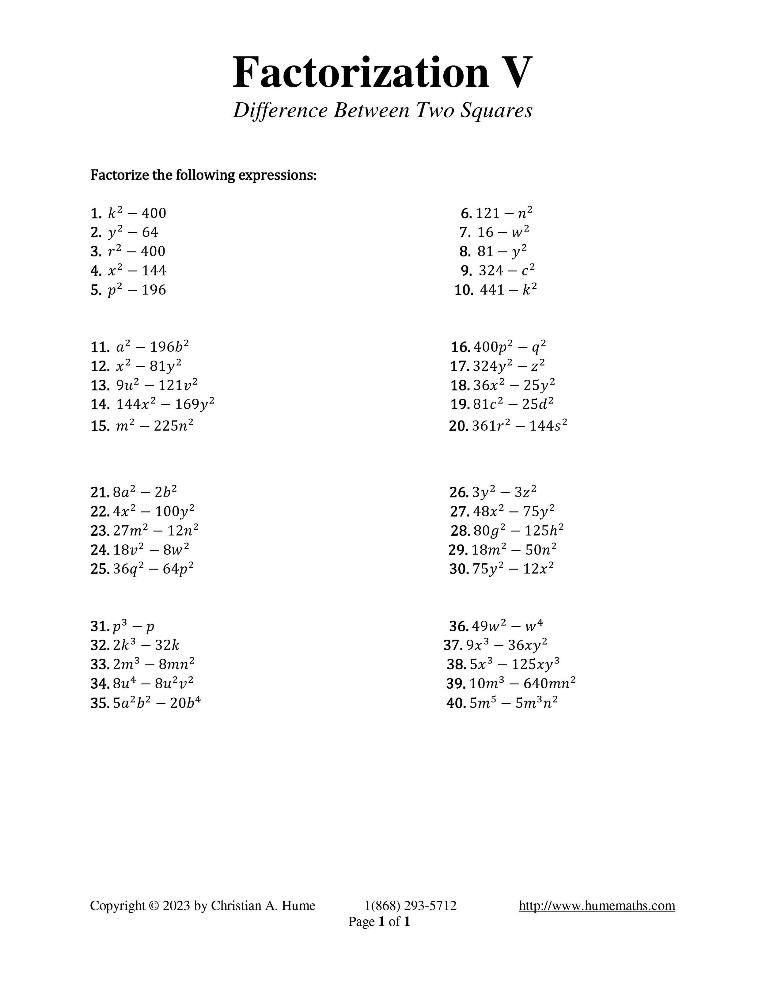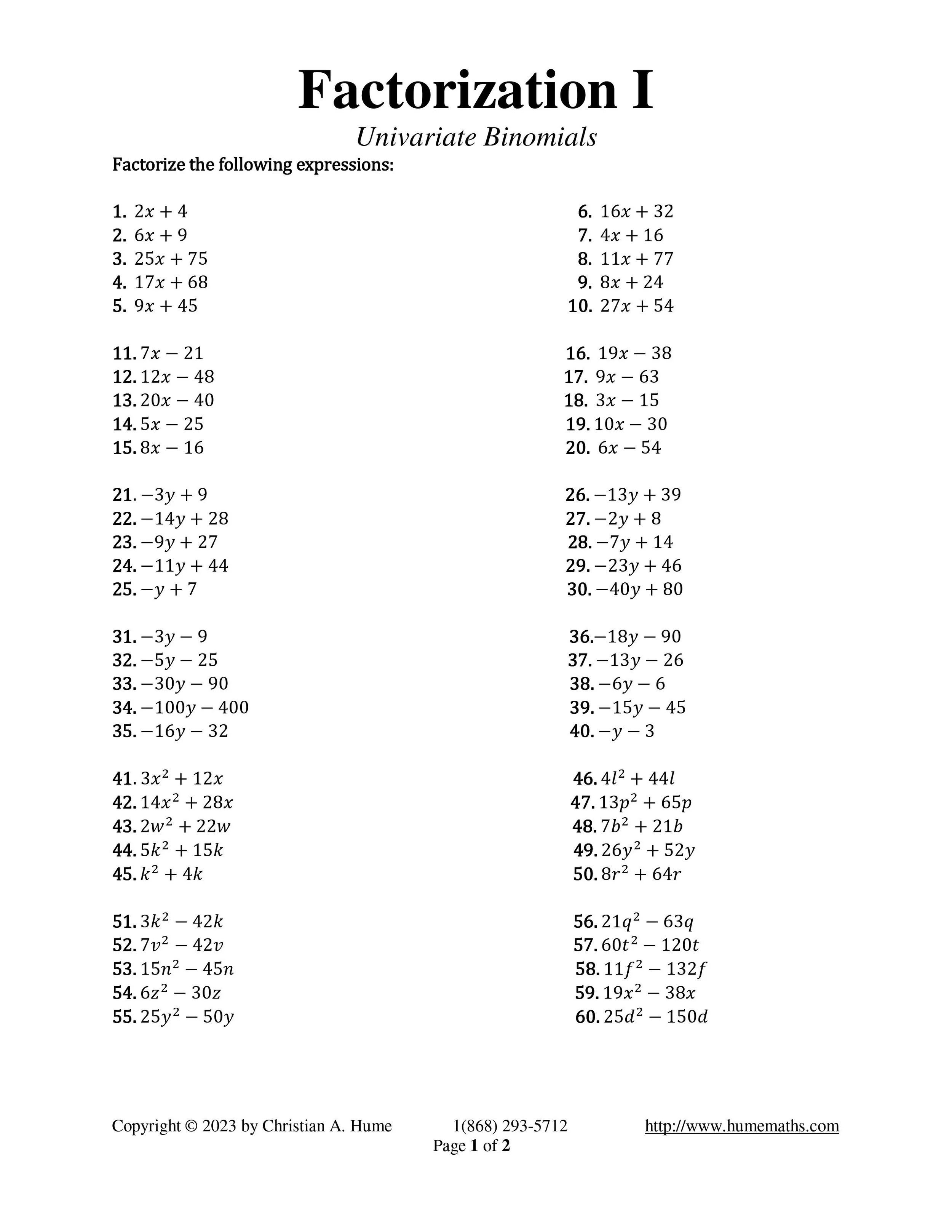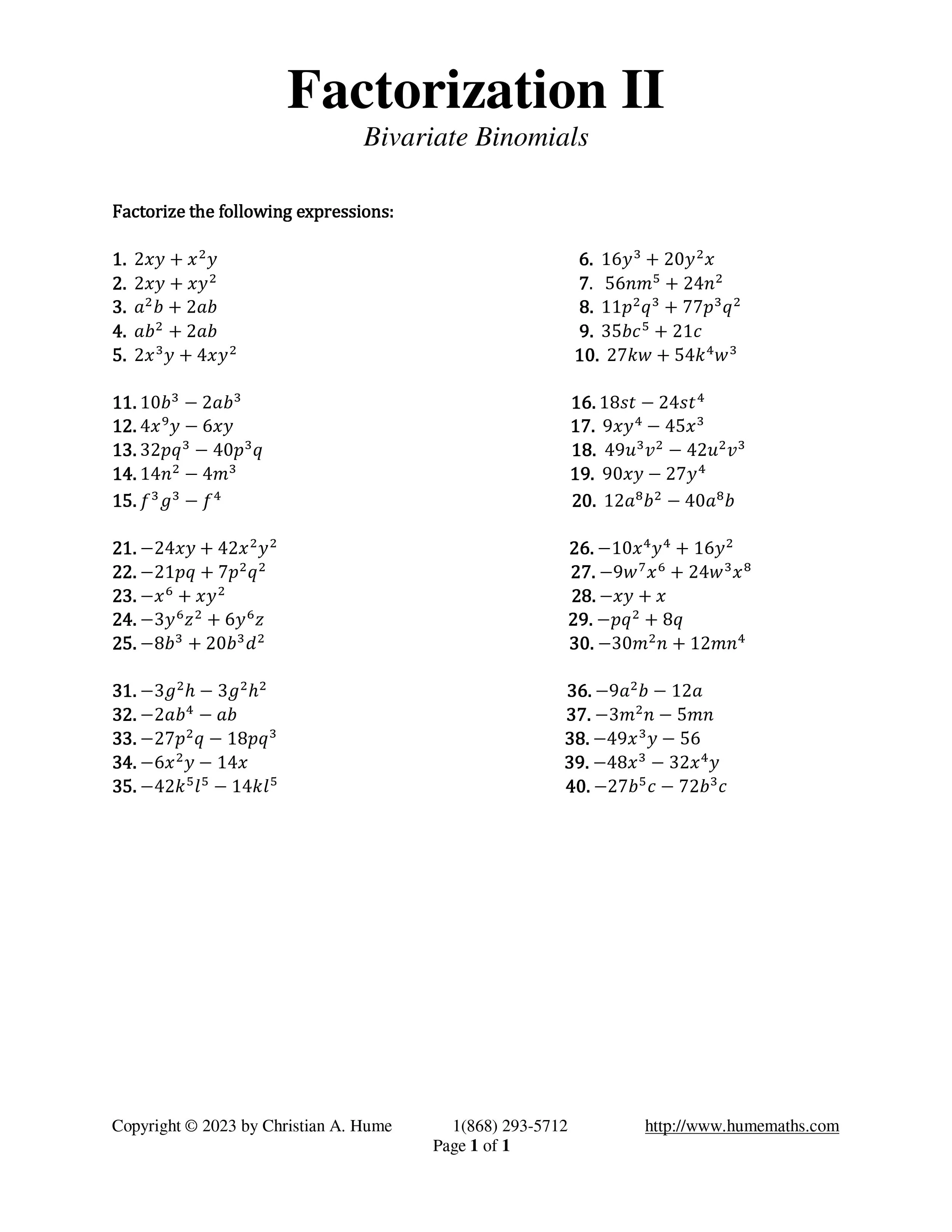 Factorization I (Univariate Binomials) Factorization II (Bivariate Binomials)
